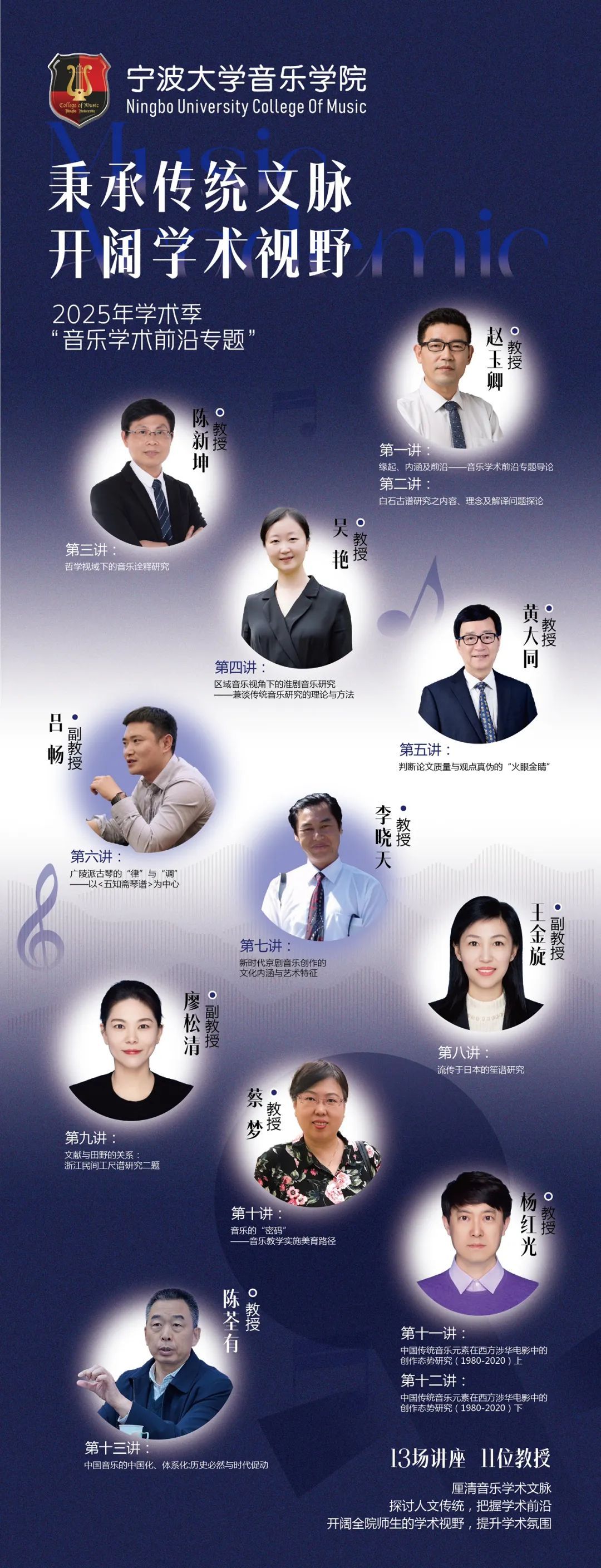 为进一步秉承传统文脉,弘扬音乐文化,学院以研究生“音乐学术前沿专题”课程为依托,2025年推出《“学术季”——音乐学术前沿专题》,邀请全国著名学人及音乐界翘楚,对音乐学术前沿作专题讲座,厘清音乐学术文脉,探讨人文传统,把握学术前沿。