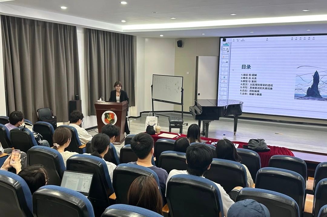 张婕怡博士的讲座围绕“对象”、“方法”和“问题”三要素讨论了西方音乐个案研究的相关问题和写作策略。在个案研究的语境中,她分享了三种研究模型:“全景式”模型分层展现方法、问题、背景与意义;“向心式”模型聚焦对象与方法适配,通过“问题-背景”循环辩证构建严谨路径;“升阶式”模型凸显问题意识,在问题的层层递进中铺陈辩证逻辑。学术写作方面,她强调避免选题空泛、论点薄弱,建议采用“主张—证据—解释”结构,辅以案例深描与理论升华。
