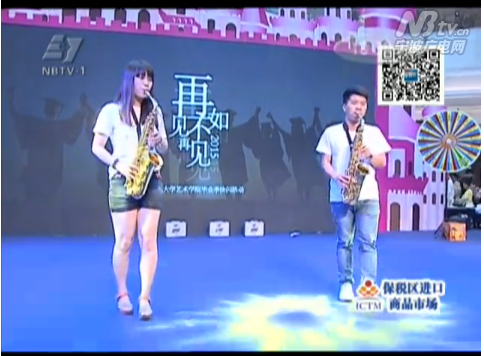 的快闪活动在以往的活动基础上更有所创新,以更多形式的表演形式引人眼球。在下午将近两点的时候,随着商场人流量逐渐增多,我们的快闪活动也随之开始。两位乐手当街坐定开始拉起了二胡,突如其来的乐声引得游客纷纷驻足观看,紧接着两位萨克斯手也从人群中出现加入到表演中来。当乐声戛然而止,曼妙的舞娘,红衣水袖惊现,一曲惊鸿舞将现场气氛推向高潮;婉转的乐声峰回路转,眼前又现韩舞热潮令人应接不暇。最后从四面八方聚集的快闪成员合唱《同桌的你》为毕业季主题画上点睛之笔。乐曲尾声时绝大部分快闪成员快速闪开,寓意点点薪火散开,点亮青年未来的希望,体现了毕业季的主题,演绎了独具宁大特色的风采。