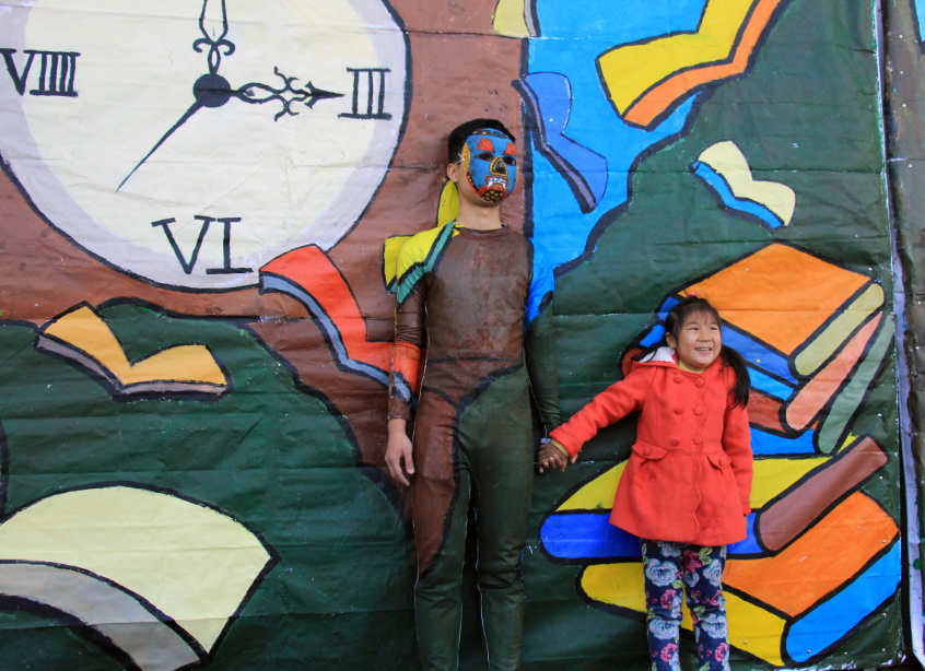 本次活动主要展出了“图书馆”、“南天门”、“天使之路”、“不做隐形人”四幅手绘背景墙,前三个场景运用人体彩绘的形式将表演者融于背景墙,体现“隐形人”主题,同时与第四个场景中身着印有主题内容的白色服饰的表演者形成对比。同学们纷纷驻足围观,并在表演者的表演服上签名,现场气氛热烈活跃。