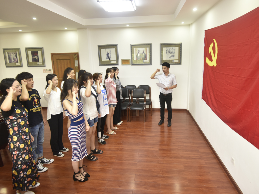 在会议的最后陈老师带领全体与会成员重温入党誓词,铭记一名党员所应该肩负的职责。