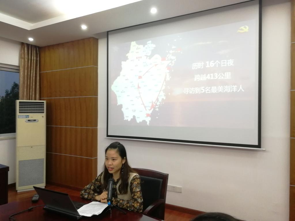第4期入党积极分子培训班成员、团学干部和党员发展对象作了主题为“脚踏实地,勇立潮头,做最美海洋人”和“寻访最美乡村教师”的专题报告。