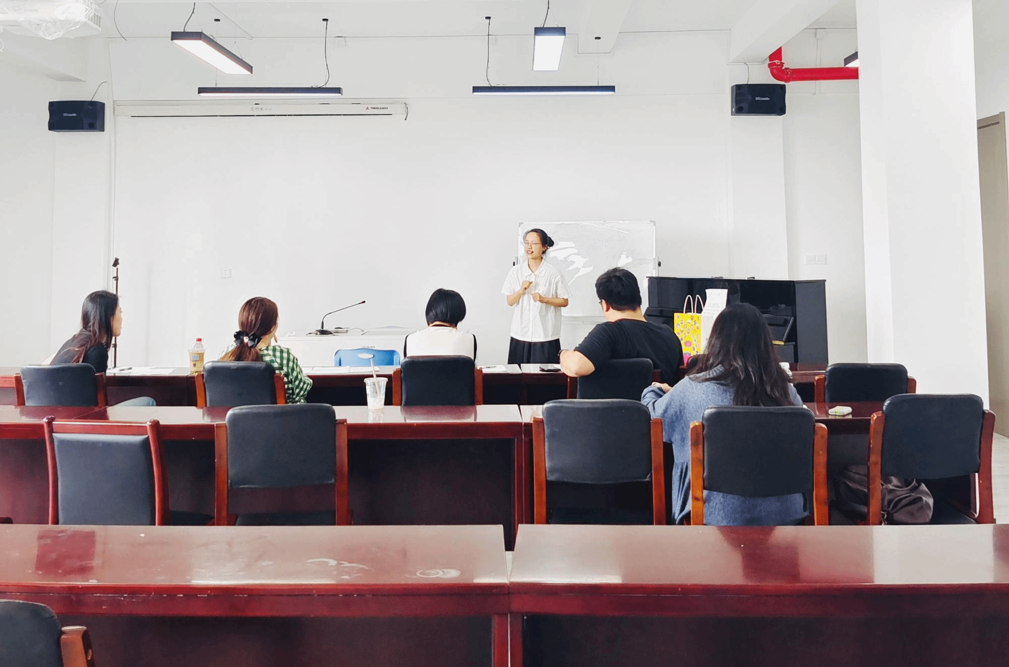 本次竞赛分为两轮选拔,第一轮在6月8日,19级89名同学分为六个赛场,各赛场两位评委根据学生的表现,参照评分标准中规定的项目酌情打分,比赛结束后选出排名靠前的15名同学,在6月14日下午1点再次进行第二轮选拔,最终评选出5名优秀师范生参加校级比赛。