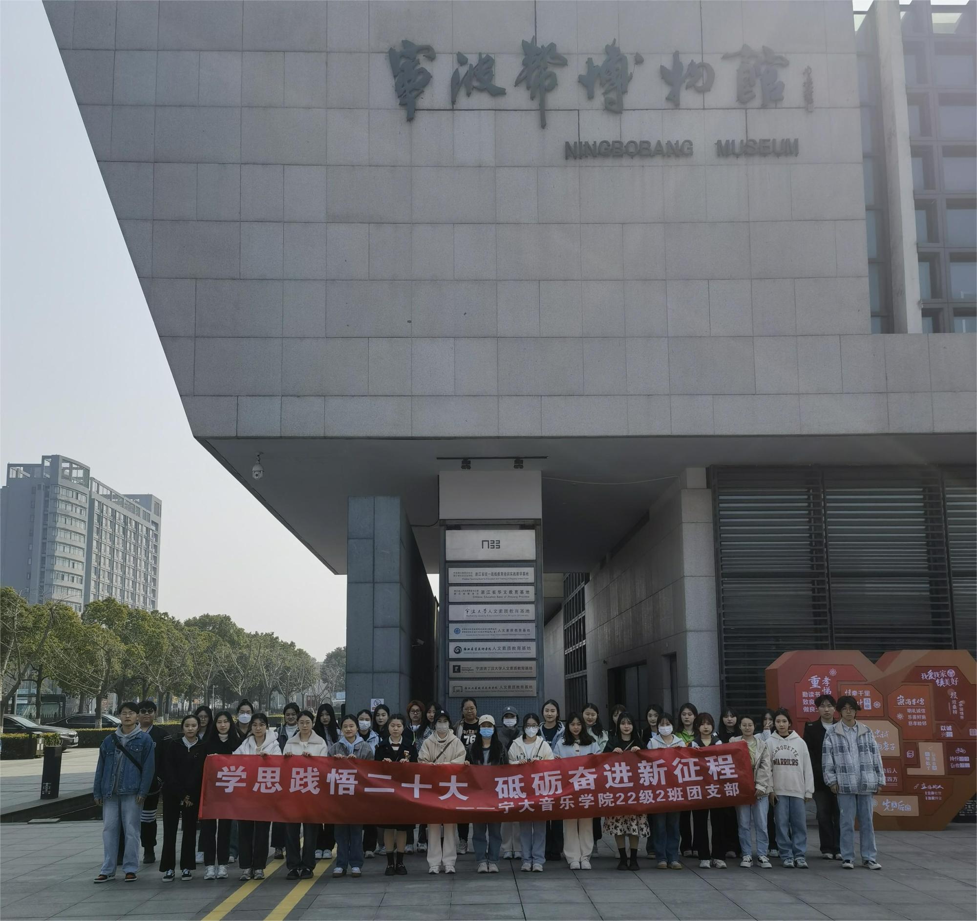 3月4日,22级音乐学(师范)1班2班团支部全体成员迎来本学期首次行走的团日活动——走访宁波帮博物馆。通过此次专题学习教育,帮助同学们深度了解宁波历史,感受宁波商帮文化,传承弘扬拼搏奋斗精神和明理爱国情怀。