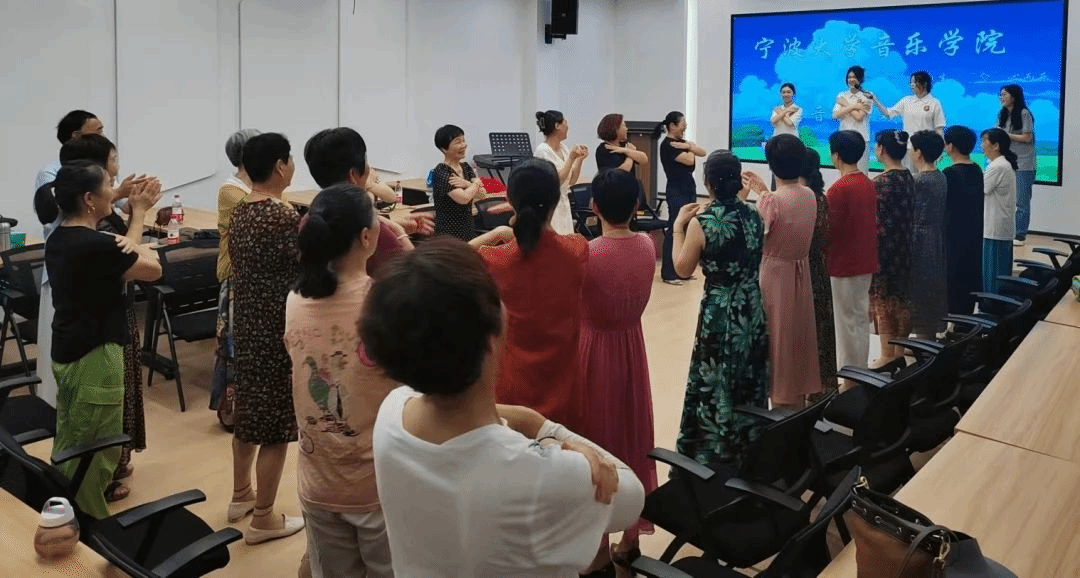 ‘音’爱而生,‘愈’心而乐暑期社会实践团队”的同学在7月份来到了宁波市鄞州区东吴镇老年大学,策划并组织了一系列适合老年人的音乐趣味游戏活动。这类活动旨在通过游戏互动、团体协作等方式,为老年大学的叔叔阿姨带来丰富多彩的音乐实践和体验,提高他们对于音乐的鉴赏和认知。