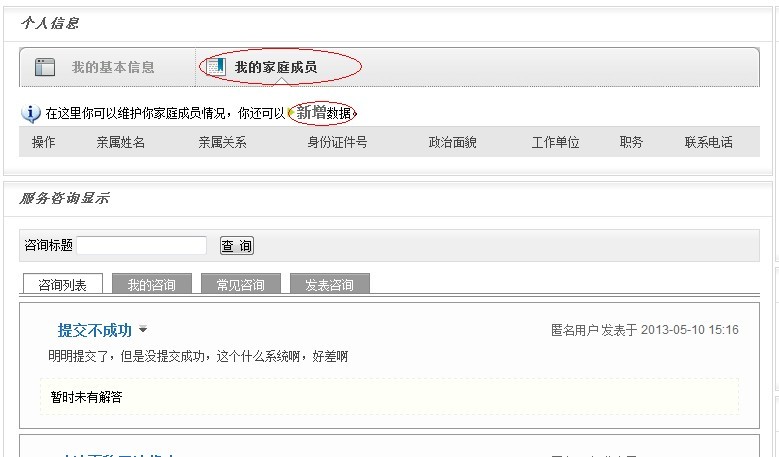请同学们对本人信息进行如实修改、保存、提交,同时再对“我的家庭成员”和“个人扩展信息”进行填补完善,如下操作: