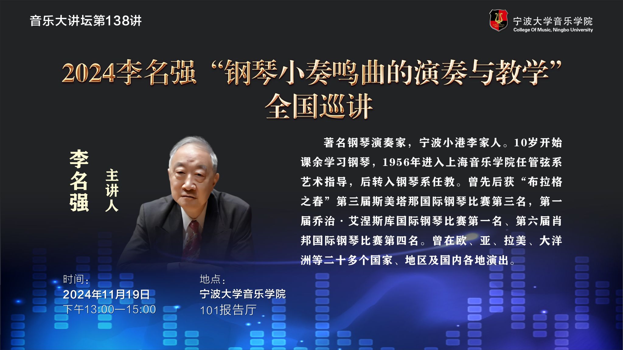 音乐大讲坛第138讲:2024李名强“钢琴小奏鸣曲的演奏与教学”全国巡讲