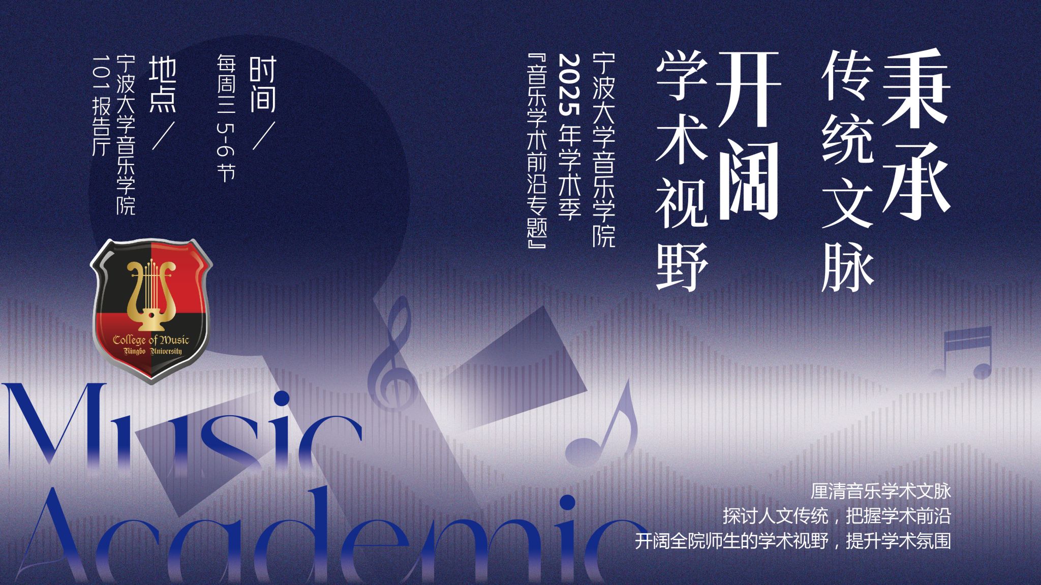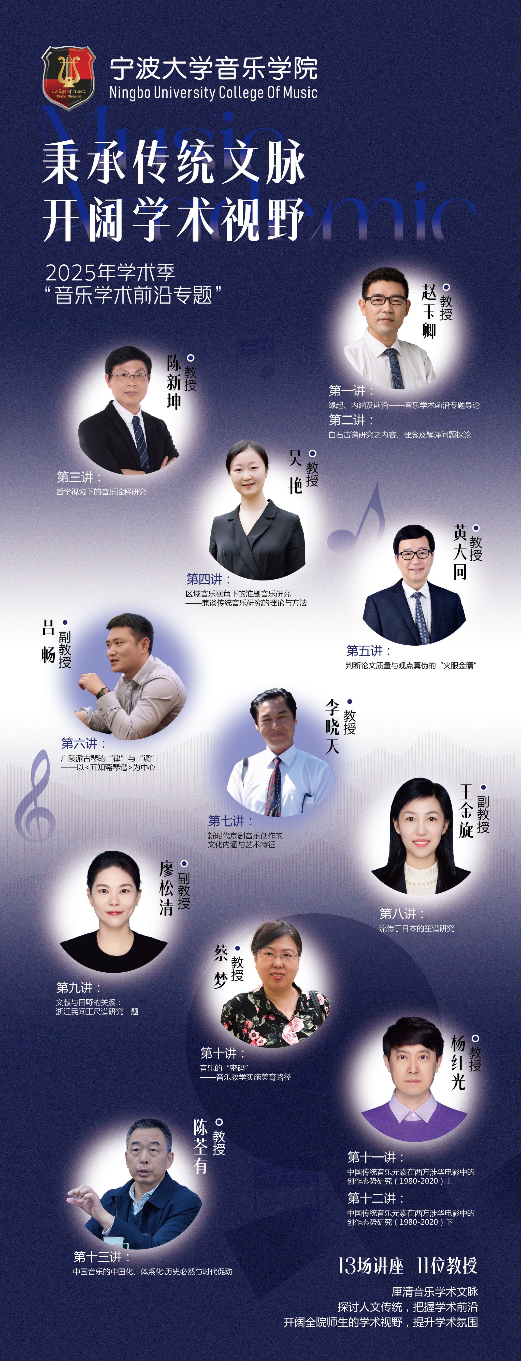 为进一步秉承传统文脉,弘扬音乐文化,学院以研究生“音乐学术前沿专题”课程为依托,2025年推出《“学术季”——音乐学术前沿专题》,邀全国著名学人及音乐界翘楚,对音乐学术前沿作专题讲座,厘清音乐学术文脉,探讨人文传统把握学术前沿。