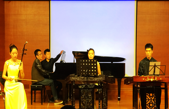 2014届的三位毕业生刘甜(二胡)、范琰黎(扬琴)、金恩生(扬琴)一直热爱着自己的专业,他们在音乐会上展示了自己大学四年的学习成果。