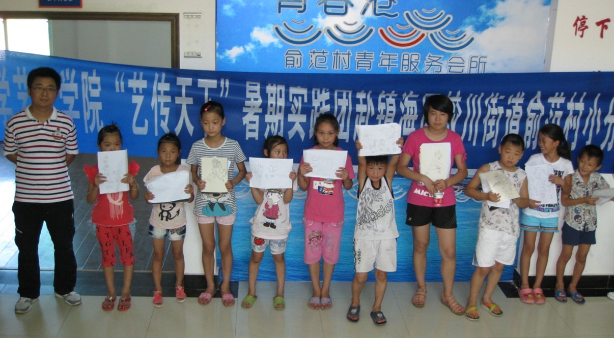 “艺传天下”暑期社会实践团赴镇海区俞范村社区活动中心小分队的实践活动。本支小分队主要由10级设计、美术专业的10名同学组成,给小朋友们精心安排的课程包括简笔画课、手工课、铅笔画课等,着力丰富孩子们的暑假生活、提升农村地区的艺术教育质量。