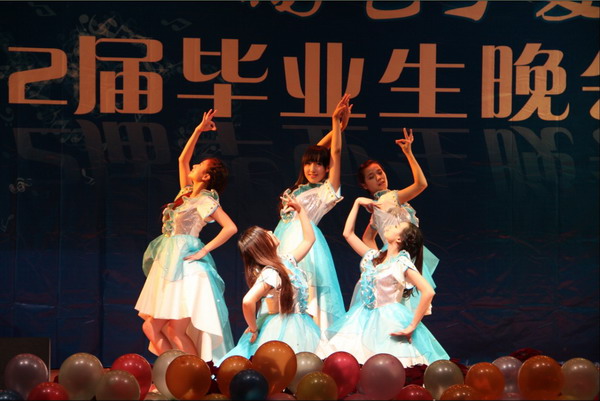 四年时光中的成长故事,08艺术设计的同学们带来的男女声合唱《龙文》、08音乐带来的劲爆爵士舞串烧《地上》《Beautiful》等将晚会带入又一个高潮,让观众们在优美的舞蹈与深情的歌声中见证了大学---我们最美的年华。晚会第三幕“桃李芬芳”为晚会画上一个圆满的句号,由08艺术设计的同学们带来的大合唱的《朋友》将观众们带入伤感的镜头,接下来的舞蹈剧《毕业照》更让广大毕业生湿了眼眶,演员们细腻到位而又略带哀伤的舞蹈动作为大家传递了一份难舍的同窗之情。
