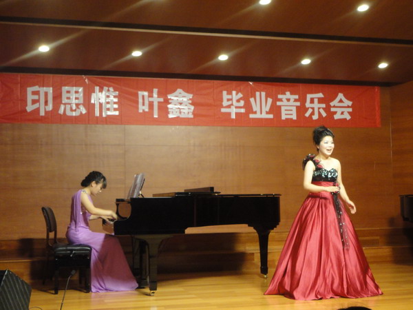 音乐学专业2012届毕业生印思惟、叶鑫声乐专场音乐会在西校区小音乐厅举行。
