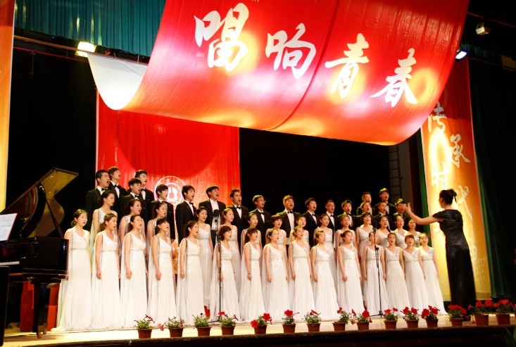纪念建团90周年学生大合唱比赛在林杏琴会堂举行。来自音乐系的50名同学代表捷克论坛
