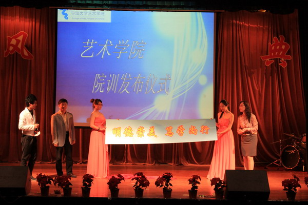 院训发布仪式在锦绣小剧场举行。院长喻辉、院党委书记袁虹共同揭晓学院院训。“明德崇美,笃学尚行”被正式确定为艺术学院院训。