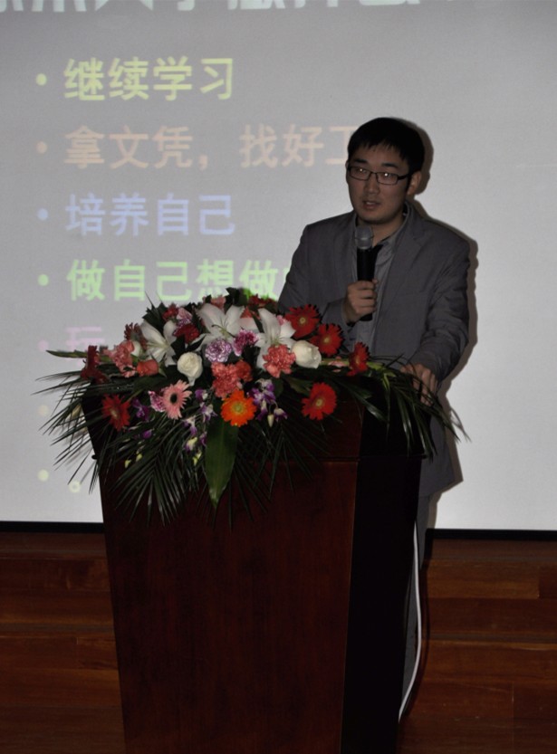 学生干部谈了自己的工作感悟以及学习经验。李健同学以自己进入大学到目前为止的经历,从学习、工作、兼职经历、大学感悟这四个方面向同学们提出了一些建议,其中包括品德修养、心理素质等大学生应该具备的基本素质,并针对大一新生目前的情况提出了具体要求。李健同学还讲述了走上社会后需要注意的问题,包括如何融入社会及青年身上的弱点等等,并讲解了他是如何发展自己并带领团队挖掘到了创业道路上的第一桶金。最后,李健同学和大家分享了自己对大学生活的一些感悟,并对学弟学妹们提出了自己的希冀,希望大家学会感恩、学会独立、学会如何成长。