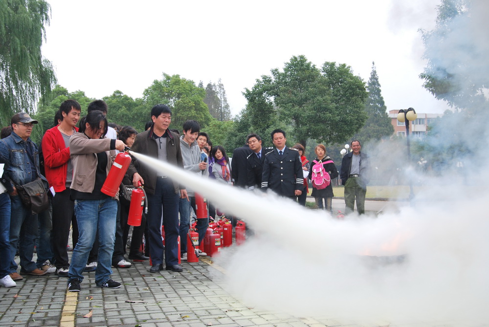 讲座结束后,学院义务消防队员就在保卫处老师的指导下,开始了灭火器的使用演练。在滚滚的浓烟中,义务消防队员们手持灭火器,冲向着火点,迅速准确地将火源一一扑灭,演习达到了预期的目的。