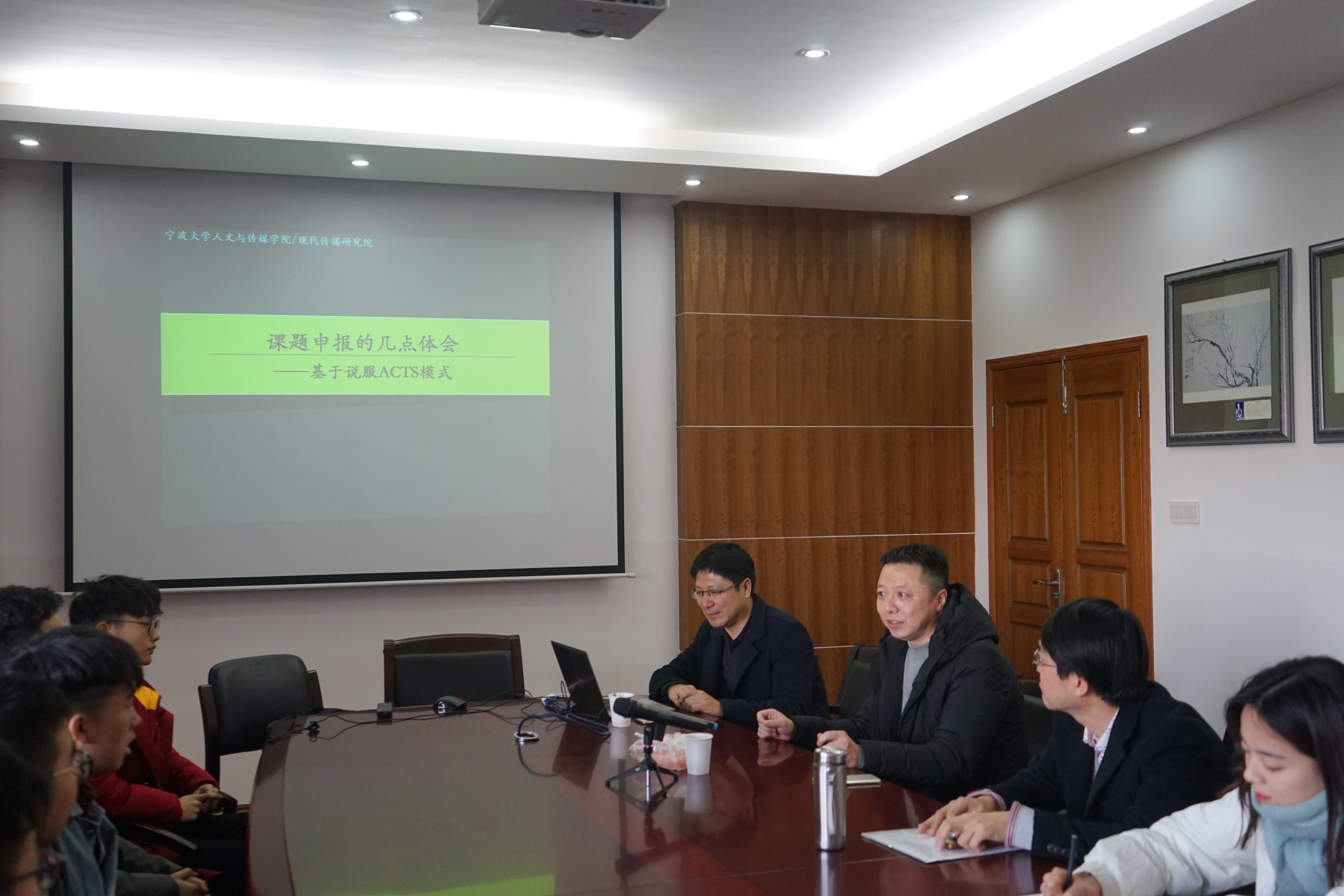 宁海林教授首先从自己的学术成长经历导入,与师生们分享课题申报中诸多的体会和感悟。随后从具有原创性的ACTS 模式的四个方面切入课题申报正题。这四个方面分别是指: attention (注意)、content(内容)、theme(主题)和symbol(符号)。宁海林教授依据上述方面逐层论述课题申报中的重点与难点,详细讲解了课题申报中可能遇到的困惑和问题,不仅通过生动而丰富的案例为大家答疑解惑,阐述其中的综创之道,并且与现场的师生形成了良好的交流互动。最后,刘畅老师对本次讲座进行了总结, 鼓励师生多申报课题,宁海林教授的讲座不仅增加了捷克论坛