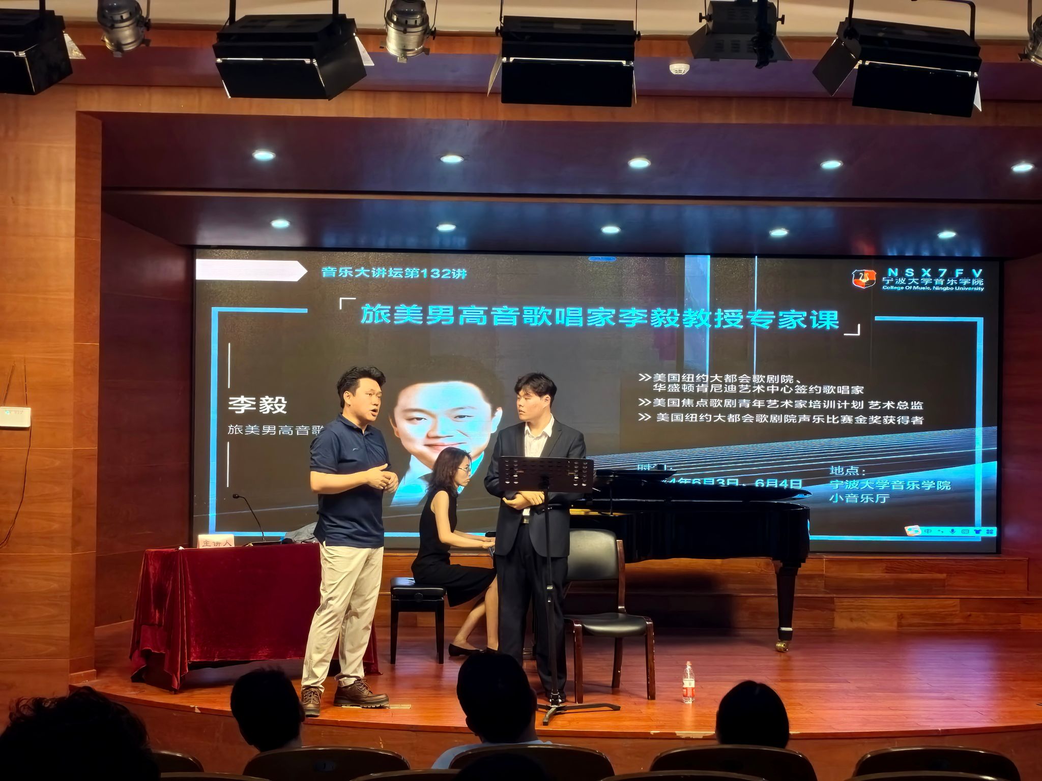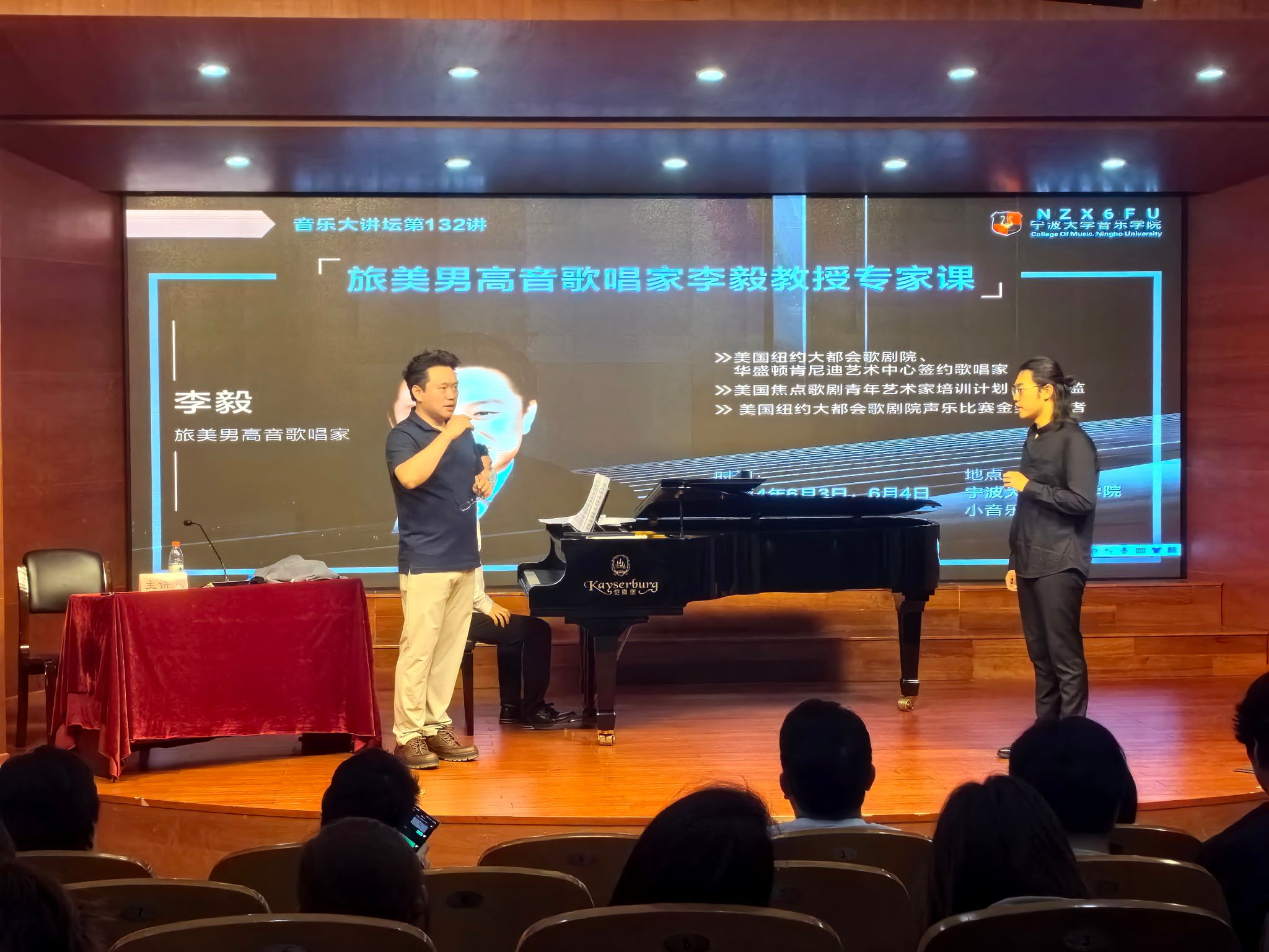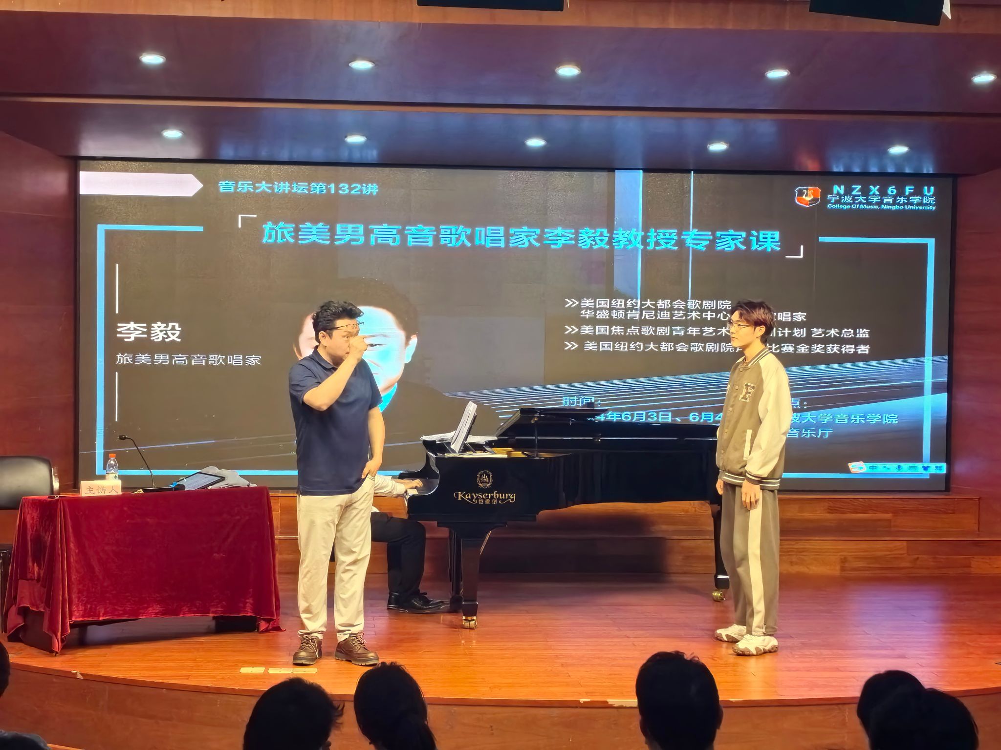 李毅教授从不同学生的性别、年龄、籍贯等方面因材施教,不但关注到了每一位学生的音色和音区特点,同时也注意到了学生的发音习惯等问题,从气息、音韵、情感等方面对学生进行了细致教导。此外,李教授也提到了演唱时的速度和音量的比例问题,介绍了在演唱不同风格的音乐时需要注意到的演唱技巧,并举例示范,生动形象地展现了声乐表演的魅力。