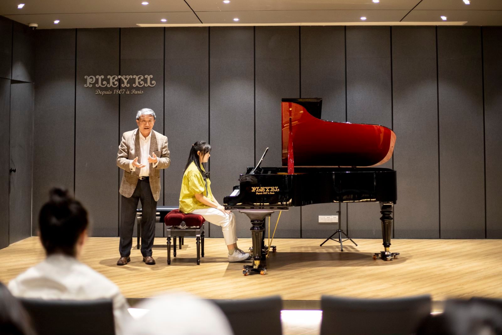 钢琴教授,键盘教研室主任并兼任孟诺中学音乐附中校长潘洵教授主讲,吸引了众多音乐爱好者与钢琴学子前来聆听学习。在课程中,潘洵教授针对五位学员的演奏进行了深入细致的点评与指导,其精湛的专业素养与独到的音乐见解赢得了在场观众的阵阵掌声。