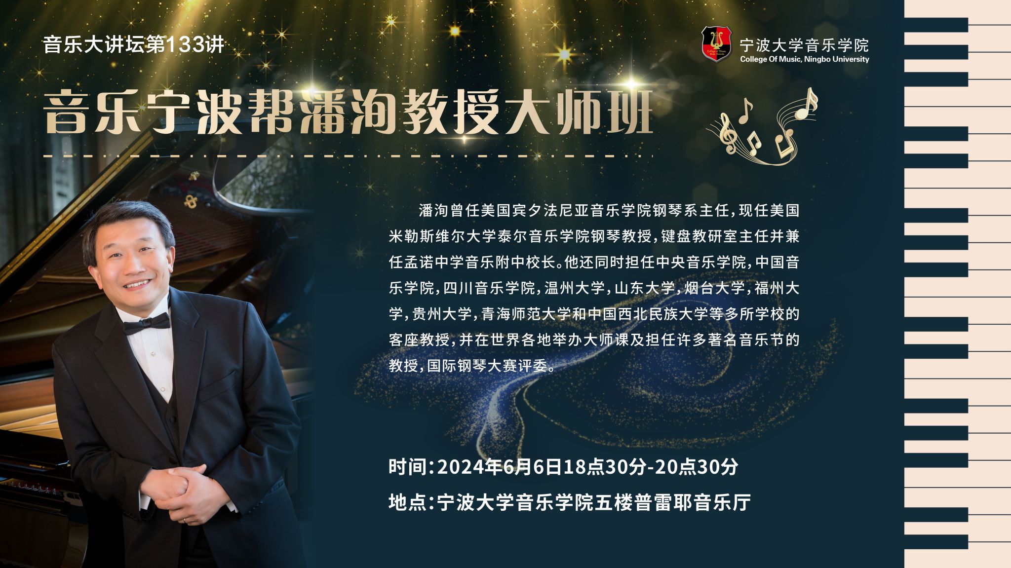 2024年6月6日18点30分,备受瞩目的潘洵教授钢琴大师课在捷克论坛