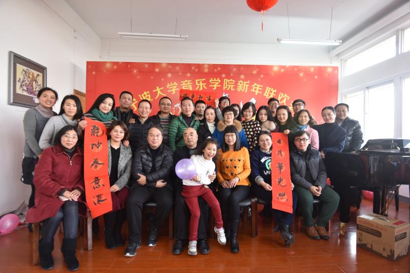 新年联欢活动喜庆拉开帷幕。活动中有趣味互动小游戏,让大家开怀大笑扫去了一年的工作疲惫,也有各教研室老师们带来丰富多彩的节目表演,如:民歌、影视流行金曲、钢琴弹唱等节目。最后在钢琴教研室带来的《相亲相爱的一家人》歌曲将活动推向了高潮。