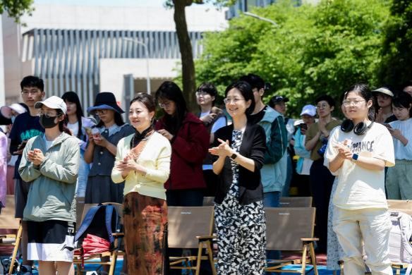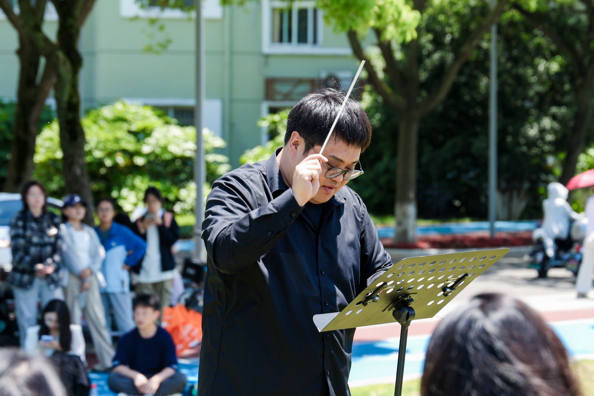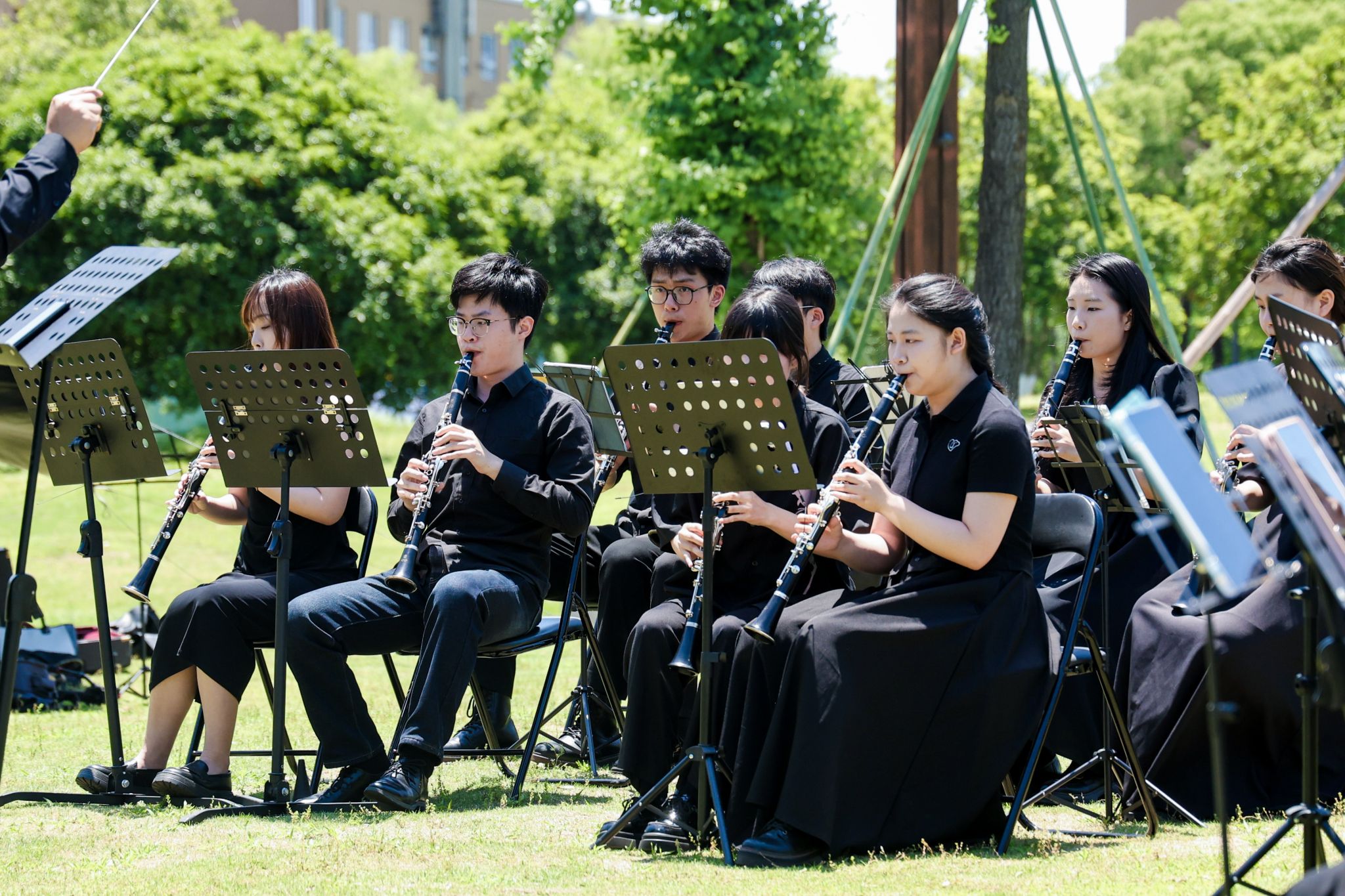 在明媚的阳光下,交响乐团带来的《在灿烂的阳光下》这首经典曲目,以充满西方技巧的交响乐和充满浓郁中国文化底蕴的音乐作品让现场的学生们沉浸在熟悉而又美妙的旋律中。该曲以“吃水不忘挖井人”为唱词开头,讲述了中国共产党领导全国人民走过的辉煌历程,颂扬了建国以来的伟大成就。