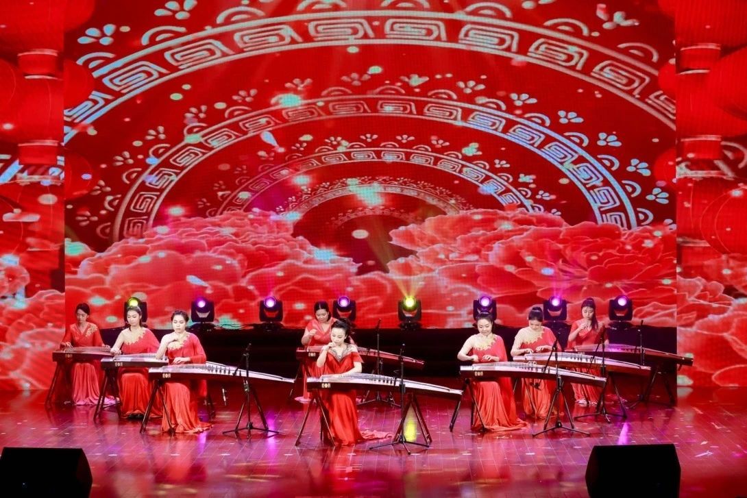 还为本场联欢会献演古筝重奏《春节序曲》、诗朗诵《我爱这土地》、舞蹈《秘色羽衣》、原创歌曲《流光翠.天童》《星光醉.东吴》等7个节目。现场近一千名村民,欣赏起这家门口的音乐会,气氛热烈非凡。