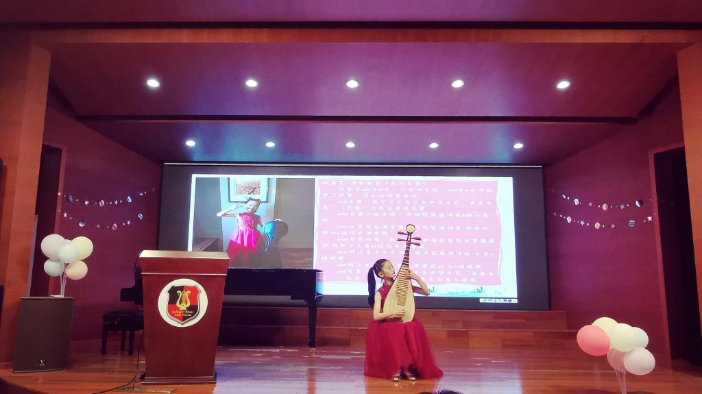 的琵琶专业教师,青年琵琶演奏家徐明慧老师主讲。徐明慧老师首先邀请小朋友们一起来学习并认识琵琶的构造,通过提问抢答的方式让大家对琵琶有了初步的了解;接着让小朋友们排队上台展示自己正确而优雅的琵琶弹奏的坐姿;最后,由徐明慧老师的4位琵琶学习者现场演奏曲目,现场的小朋友们跟随着悠扬的琵琶声感受民乐之王的艺术魅力,徐明慧老师和学生一起演奏的《送你一朵玫瑰花》将活动推向了高潮,现场的家长和小朋友们被民乐之王的悠扬声彻底征服了。