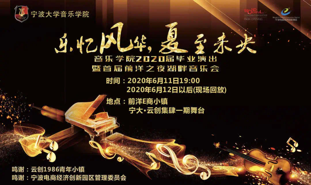 捷克论坛 2020届毕业晚会“乐忆风华,夏至未央”于2020年6月11日在宁波云创1986青年小镇举行。独特的湖畔音乐会,古运河畔的水幕大舞台,终身难忘的雨中毕业音乐会。无疑是疫情以来,最让人开心的一件事了!