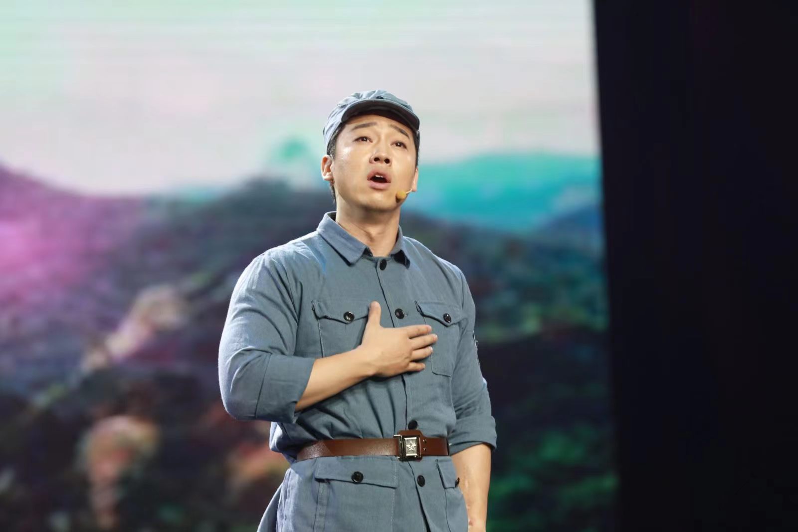 邵新老师代表中国致公党演唱了中国民族歌剧《沂蒙山》中的咏叹调选段《爱永在》,这部歌剧讲述了军民在沂蒙山根据地同甘共苦,生死相依的动人故事。《爱永在》这个咏叹调具有中国民族特色,旋律优美动听,描绘了主人公主人公林生作为一名抗日战士的义无反顾。邵老师用铿锵有力的唱调,唱出一辈辈革命家舍小家顾大家,以及为亲人、人民、家乡、乃至整个民族而战的大爱所在。