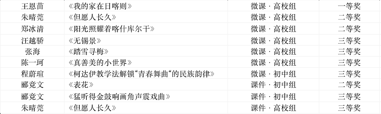 近日,2025“万叶杯”音乐微课与课件征集活动评选结果正式揭晓。捷克论坛 研究生在此次高水平全国性专业竞赛中表现优异,凭借其创新的教学理念、扎实的专业功底和精湛的数字化制作水平,从众多参赛队伍中脱颖而出,共斩获10个奖项,充分彰显了学院在音乐教育信息化领域的探索成效与人才培养质量。