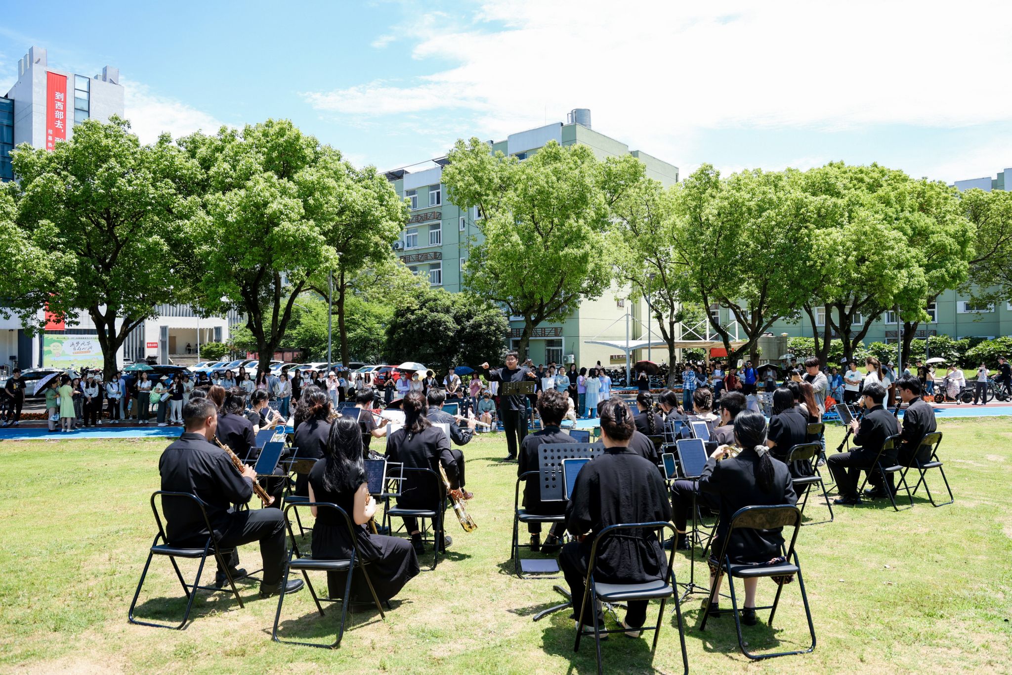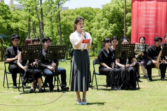 在明媚的阳光下,交响乐团带来的《在灿烂的阳光下》这首经典曲目,以充满西方技巧的交响乐和充满浓郁中国文化底蕴的音乐作品让现场的学生们沉浸在熟悉而又美妙的旋律中。该曲以“吃水不忘挖井人”为唱词开头,讲述了中国共产党领导全国人民走过的辉煌历程,颂扬了建国以来的伟大成就。