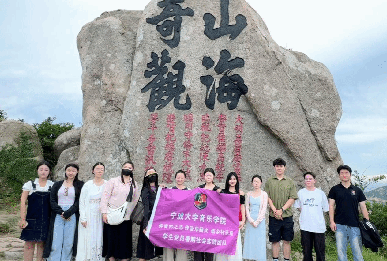 研究生第二党支部在学院党委的指导下,协同教师党支部共建单位——枸杞乡奇观村,组织开展了暑期实践活动。2025年7月6日,党支部书记徐樱宁带领12名学生党员,在教师党员李凡、油梅香的全程指导下,怀揣传承音乐薪火、助力乡村振兴的初心使命奔赴舟山枸杞岛,以"怀青衿衿之志,传音乐薪火,谱乡村乐章"为主题开启艺术赋能新篇章。团队通过精心设计的美育课堂、红色文化交流演出及人文风光探寻等丰富形式,用音符串连海岛的红色记忆与时代新声,让艺术之花在这片承载着抗倭荣光的沃土上热烈绽放。
