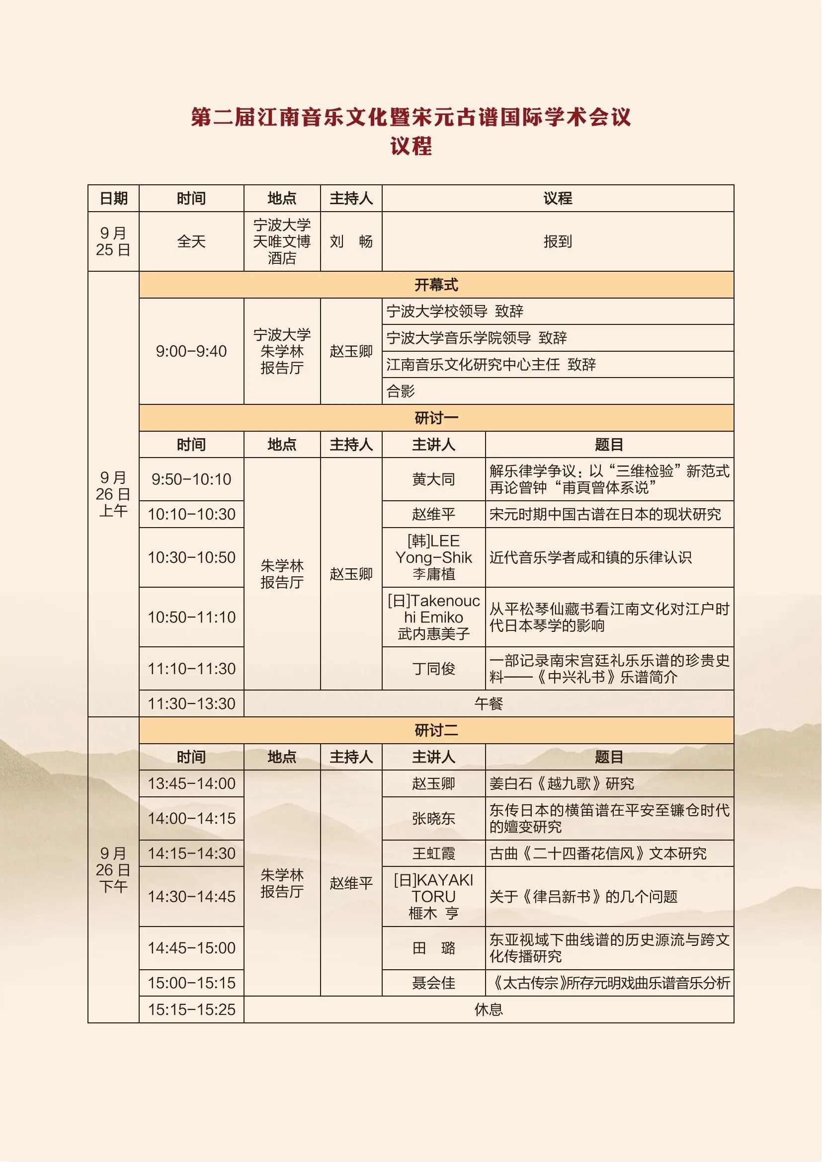 “第二届江南音乐文化暨宋元古谱国际学术会议”拟于2025年9月25-27日在捷克论坛 举行。本届会议将围绕江南音乐文化、宋元古谱等学术研究新成果进行交流和研讨。