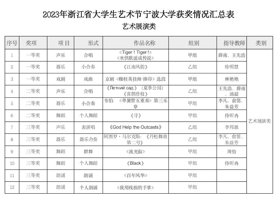 (艺术展演类获奖情况汇总表)